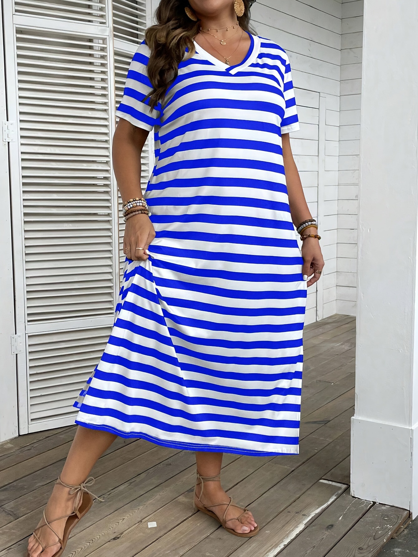 Uveng Uveng Women's Clothing 2024 Summer New V-Neck Striped Print Dress