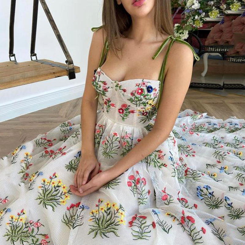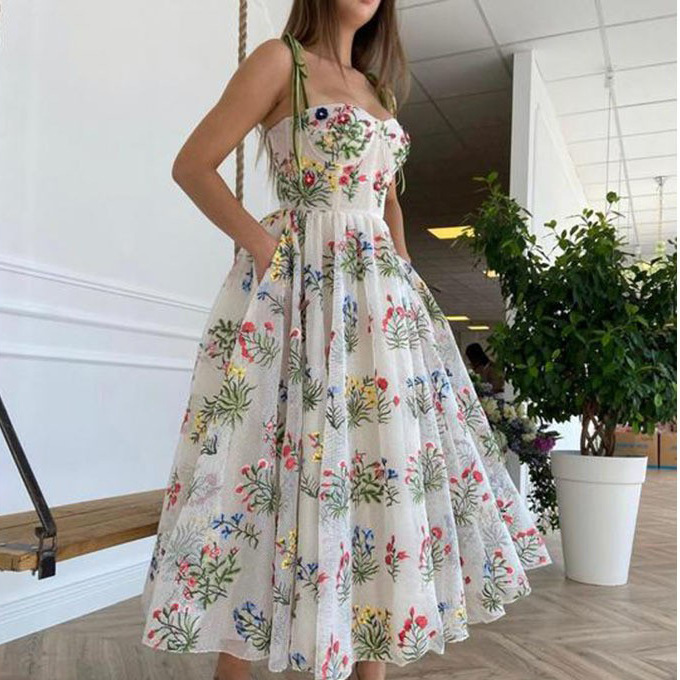 Uveng Uveng Women's Clothing 2025 Spring And Summer Dress New Waist Sexy Cross-Band Sling Skirt Print Dress