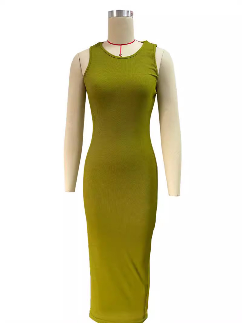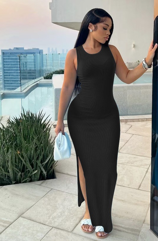 Uveng Uveng Women's Commuting Pits Long Dress Sleeveless Round Collar High-Waisted Ass Dress