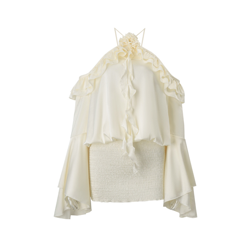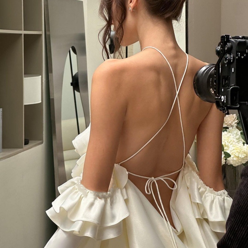 Uveng Uveng Women's Fall 2024 New Sexy Pure Desire French Temperament Open Shoulder Flounce Flared Sleeve Dress