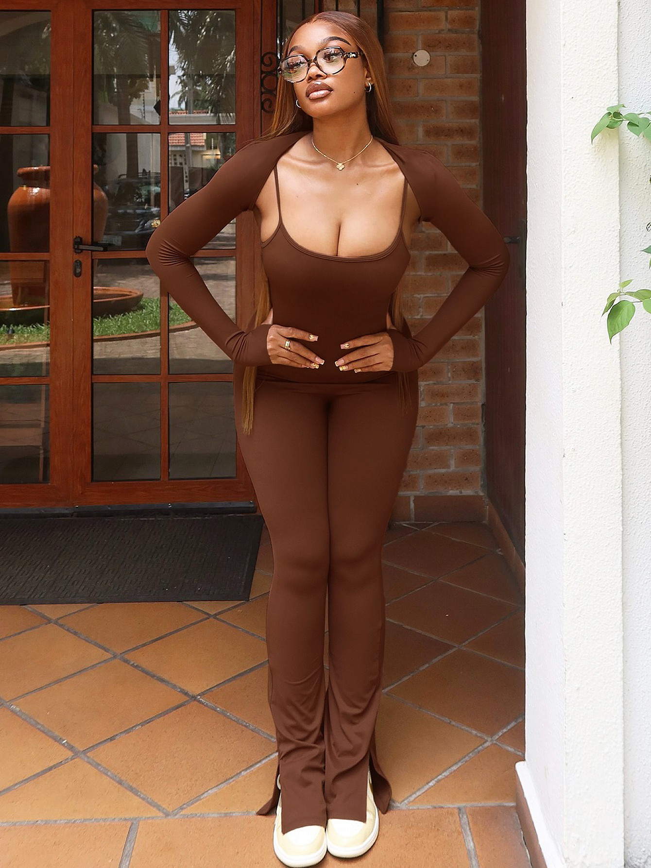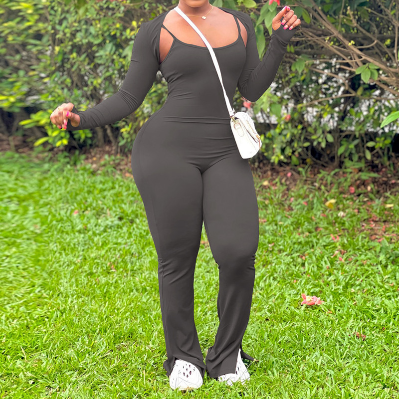 Uveng Uveng Women's Fall New Solid Color Simple Long Sleeve Shawl Jumpsuit Fashion Slim Suit