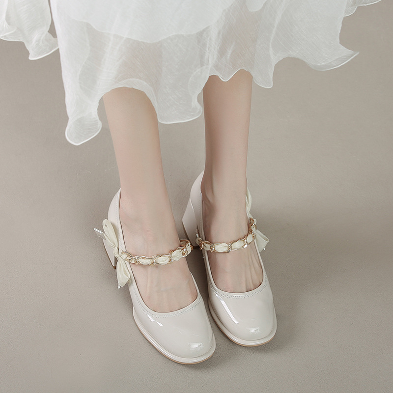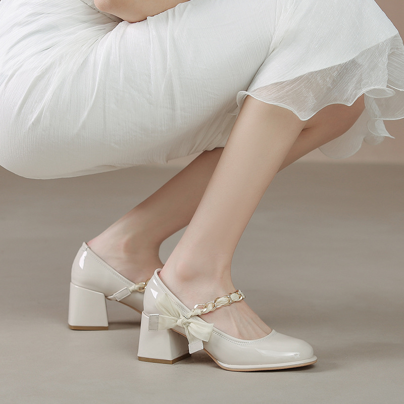 Uveng Uveng Women's Mary Jane Shoes 2024 New Summer Thick Heeled And Shallow-Mouthed French Fairy With Skirt Single Shoes