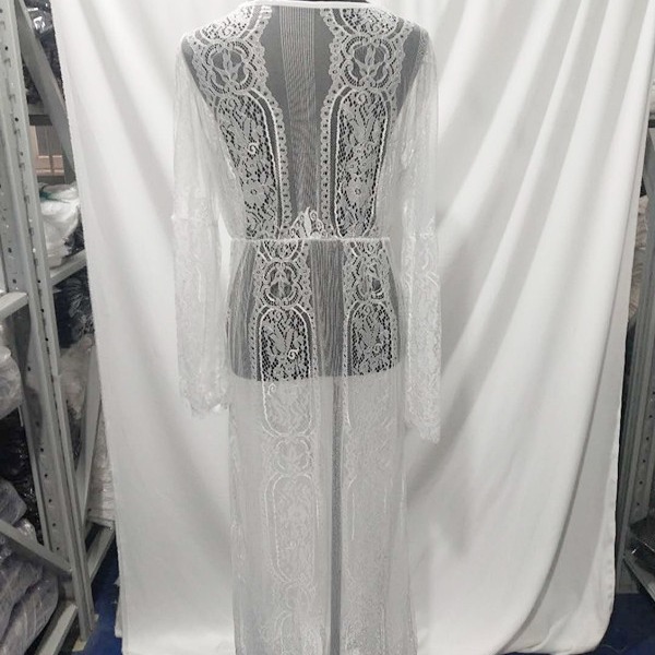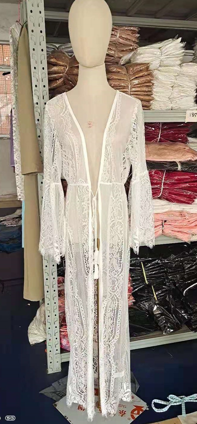 Uveng Uveng Women's New Lace Tied Rope Sexy Perspective Cardigan Bikini Beach Sunscreen Long Smock Sand