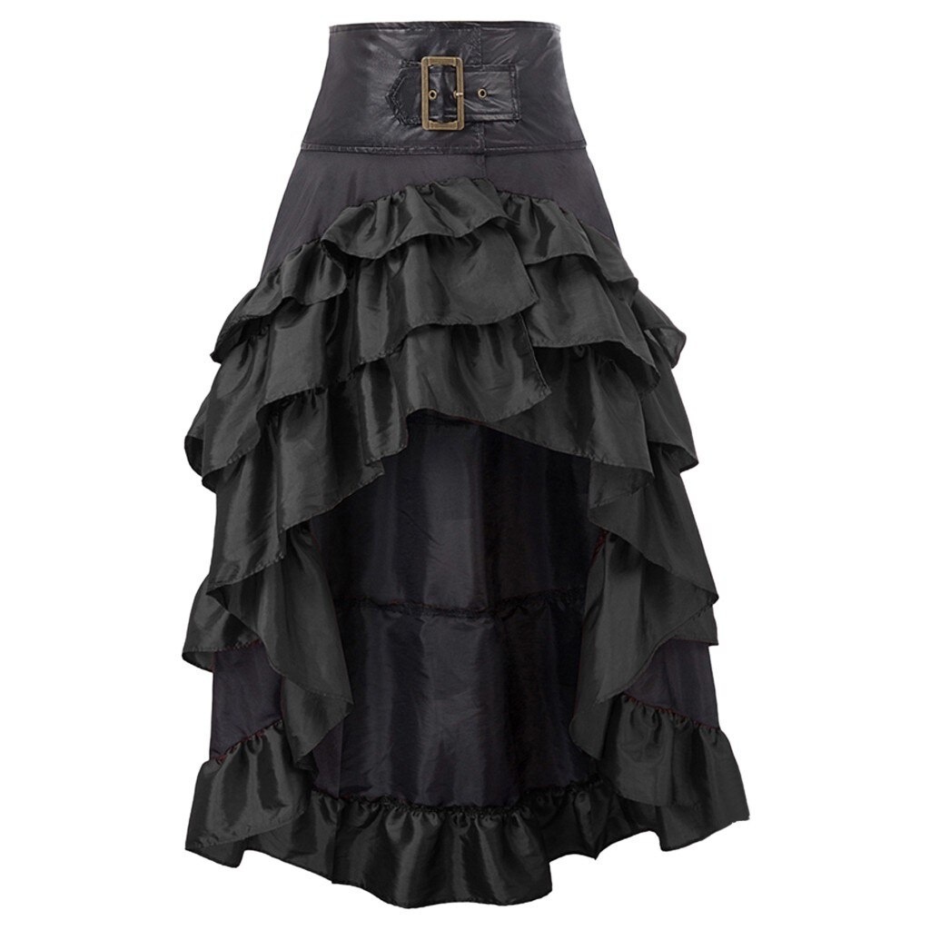 Uveng Uveng Women's New Wish Retro Solid Color Before The Short And After The Long Irregular Splicing Lotus Leaf Side High-Waisted Splicing Cake Skirt