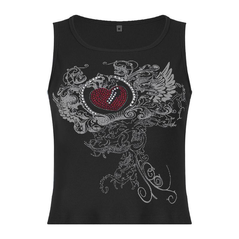 Uveng Uveng Women's Personality Hot Diamond Print Tight Round Collar Vest Sports Bottom Top
