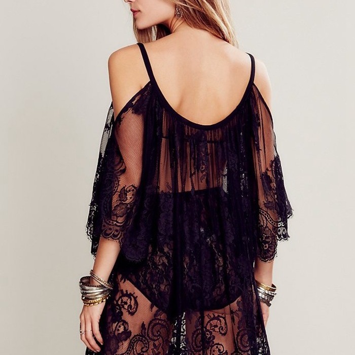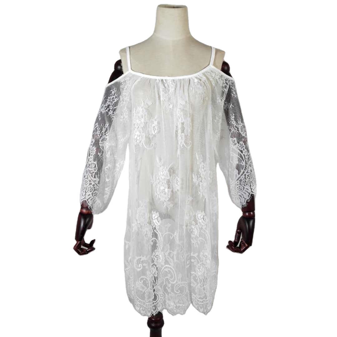 Uveng Uveng Women's Senders Sunscreen Open Shoulder Beach Sexy Lace Dress Mask Beach Sunscreen