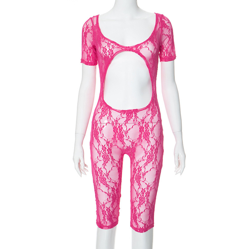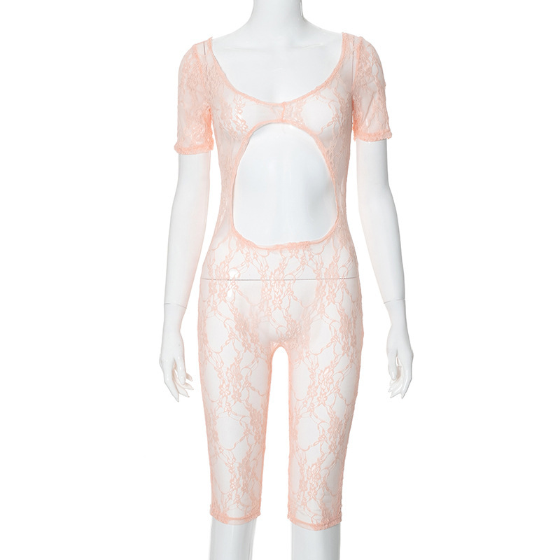 Uveng Uveng Women's Spring New Sexy Lace Splicing U-Neck Short-Sleeved Umbilly Joint Shorts