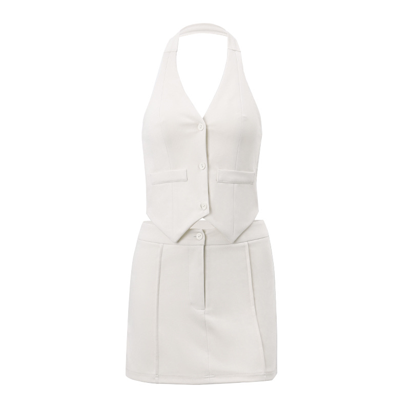 Uveng Uveng Women's Summer 2023 New Sexy Little West Fake Pocket Hanging Neck Vest Fashion A-Line Skirt Suit Female