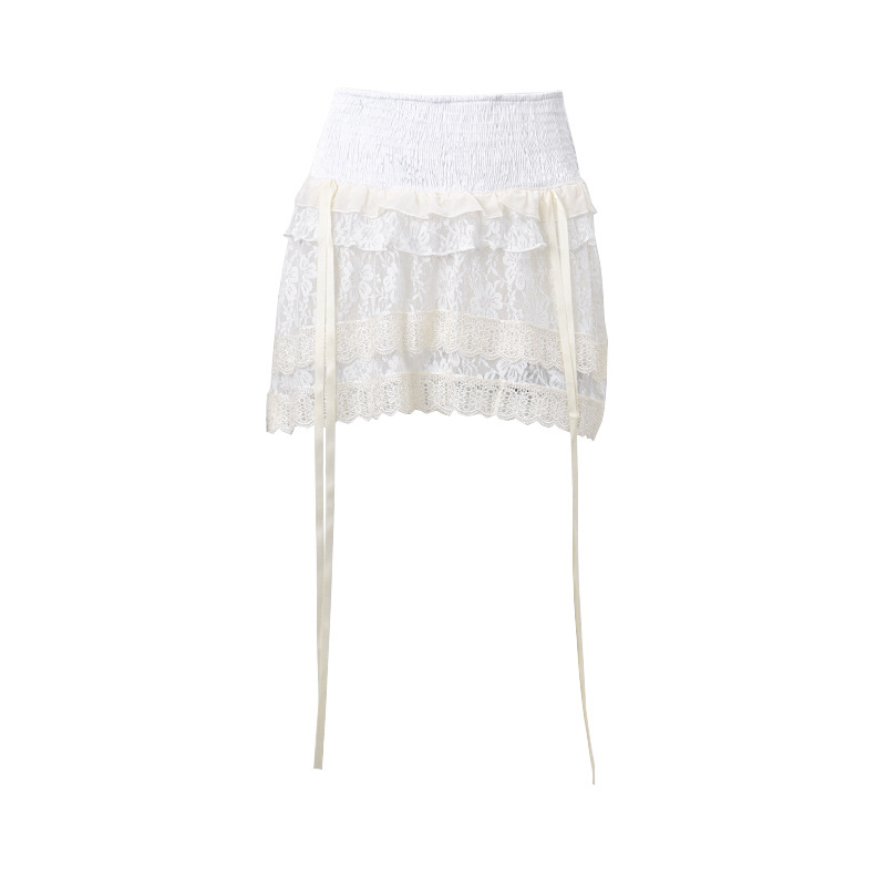Uveng Uveng Women's Summer 2024 New Sexy Hot Girl Pure Desire Wind Lace Stitching Low Waist French Sweet Skirt