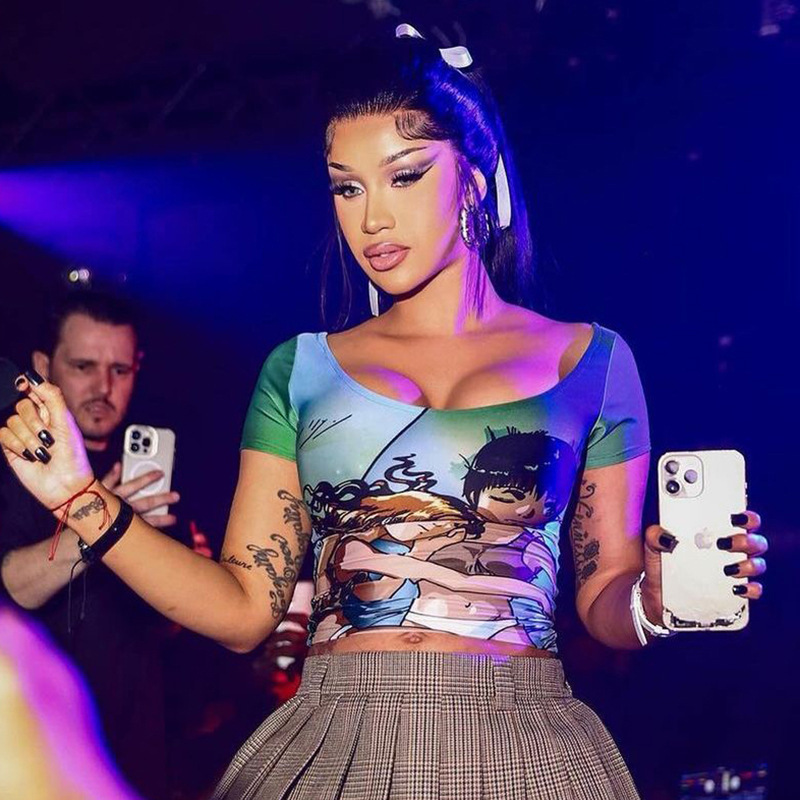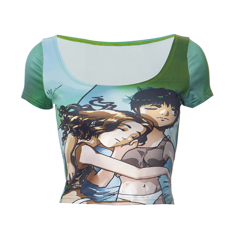 Uveng Uveng Women's Summer Fashion New 3D Digital Printed Short Sleeve U-Necked U-Necked U-Necked Umbilly T-Shirt