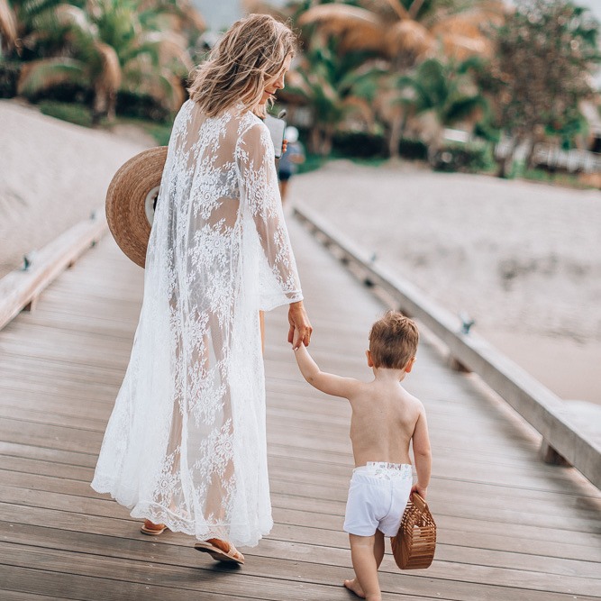 Uveng Uveng Women's Wave Lace Lace Loose Sunscreen Beach Cardigan Dress Vacation Swimsuit Smowoman