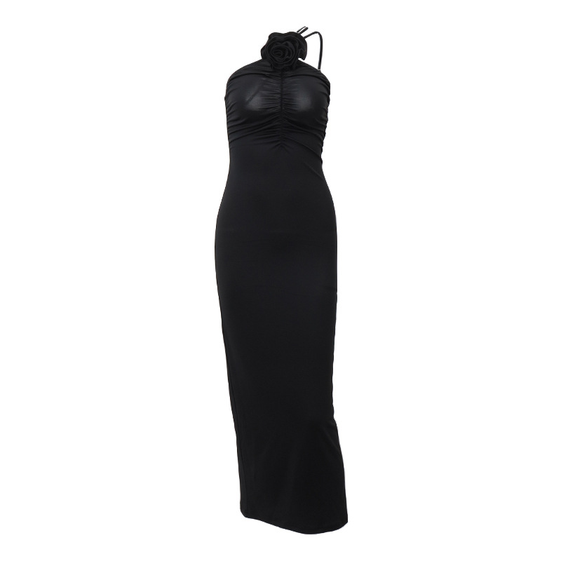 Uveng Uveng Women's Wear 2023 Summer New Sexy Show Back One Shoulder Pleated Slim Temperament Dress Female