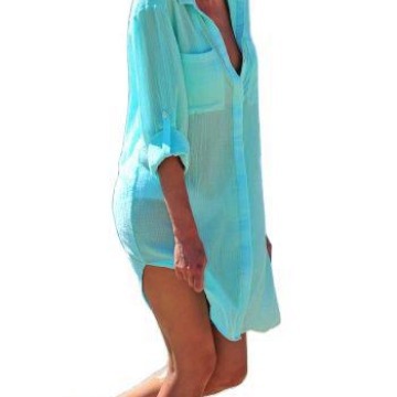 Uveng Uveng Wrinkled Two Pockets Of Beach Bikini Sunscreen Shirt, Beach Blouse (4 Colors)