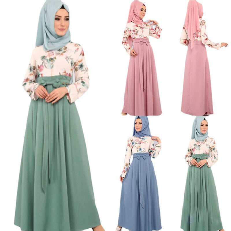 Flowers Women Temperament Commute Printed Long Sleeve Patchwork Dress