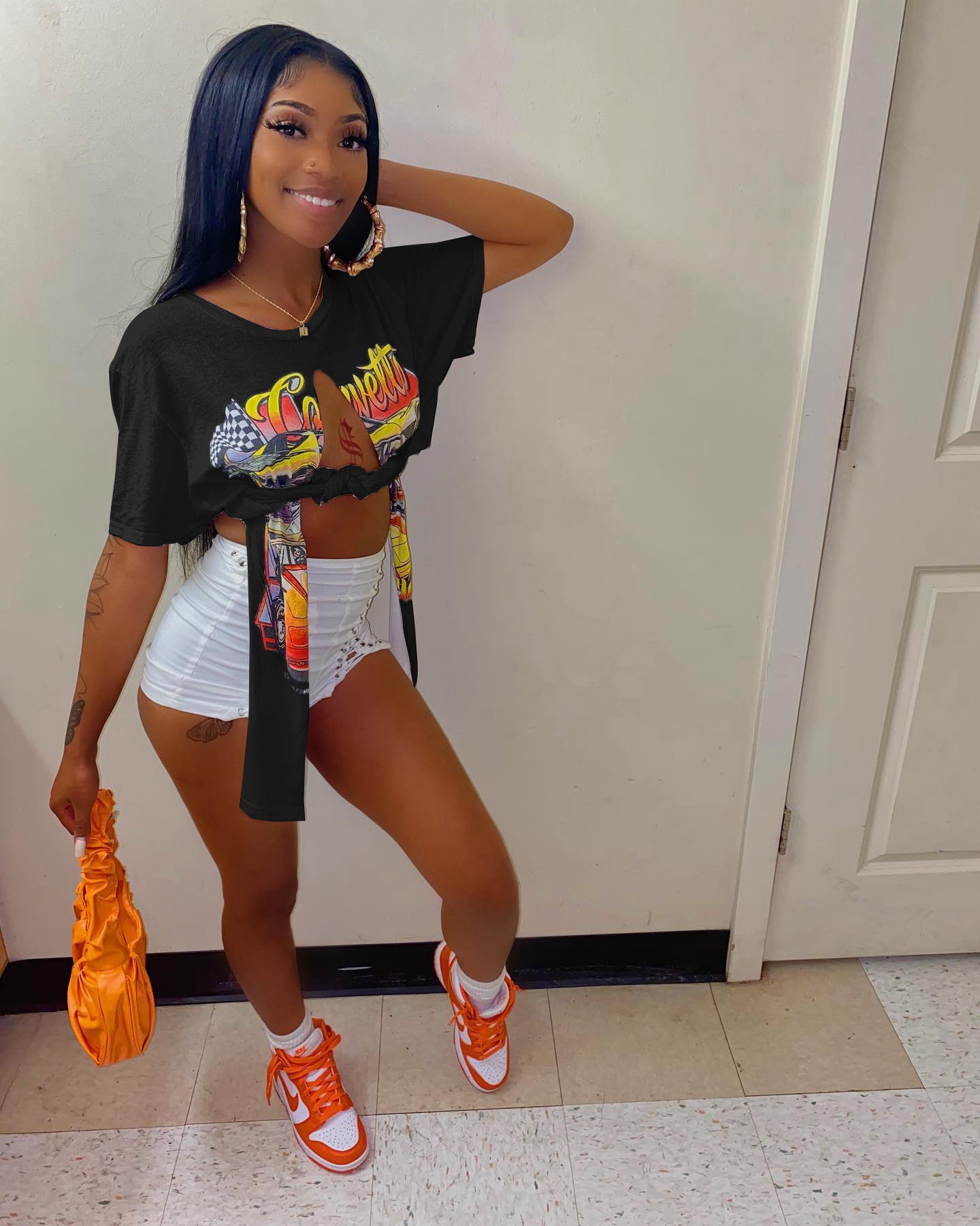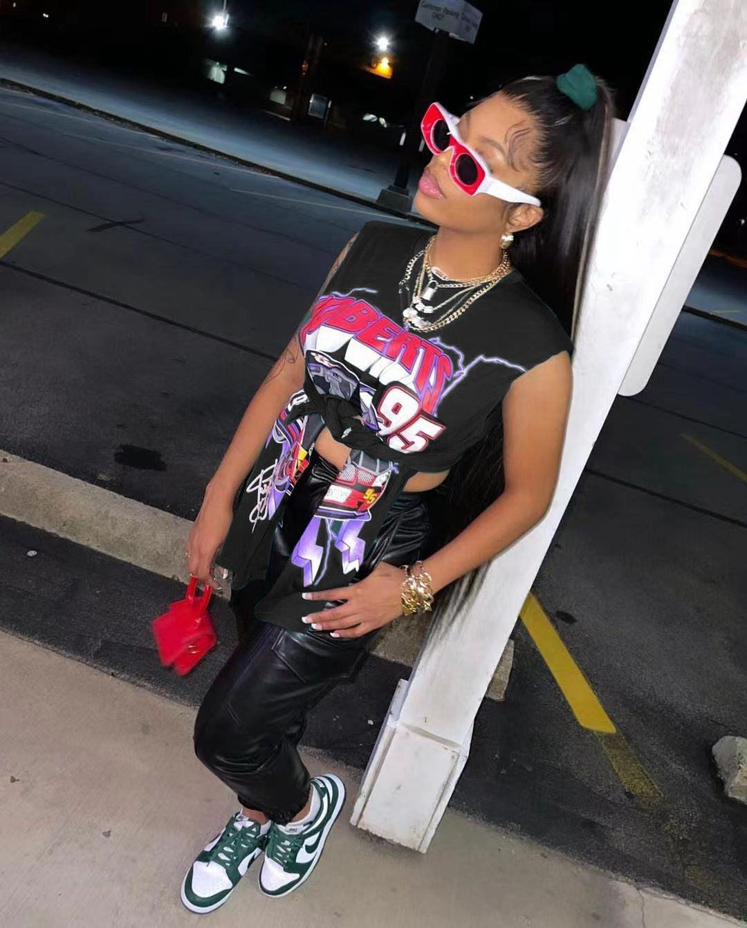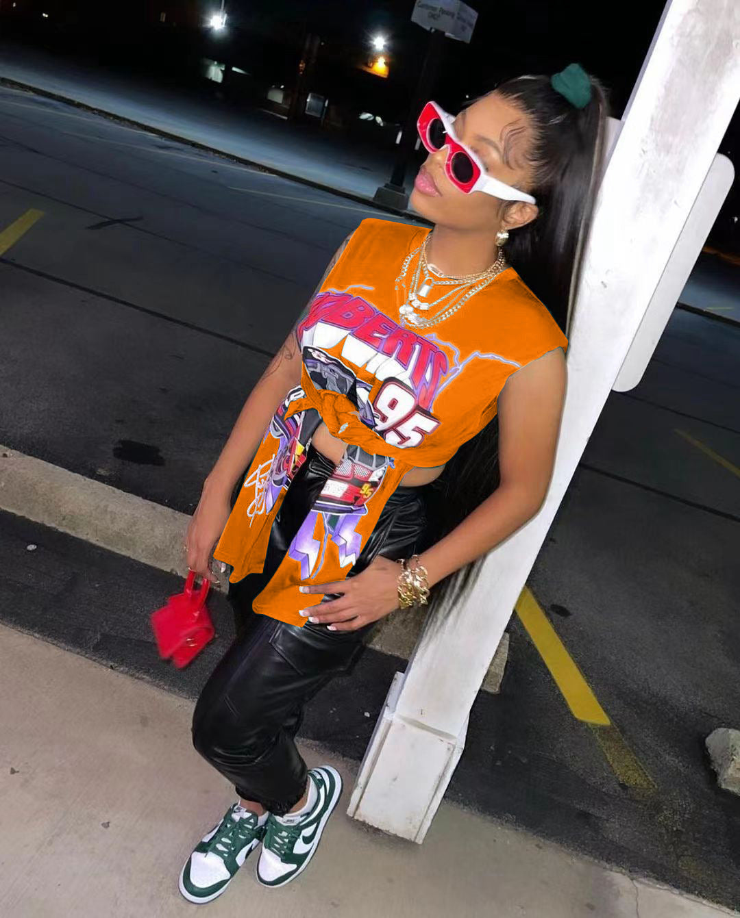 Summer Women's Modal Solid Color Printing Round Neck Fashion Wear Top