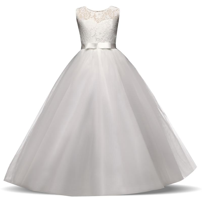 White Flower Girl Dress Kid Girls First Communion Dresses Tulle Lace Wedding Long Princess Bridesmaids Costume For Teen Girls