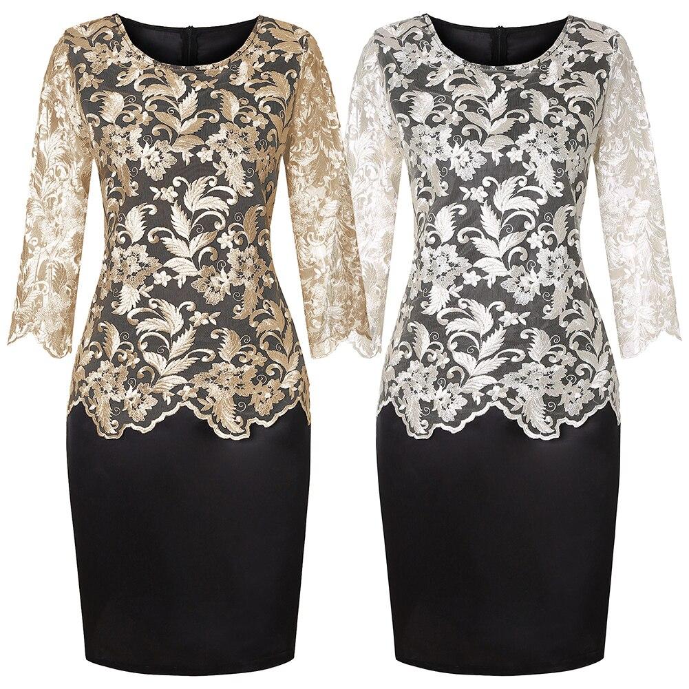 Women Elegant O Neck Half Sleeve Fake Two Piece Lace Bodycon Knee-length Dress Great Gifts for Summer Womens Dress Plus Size 5xl
