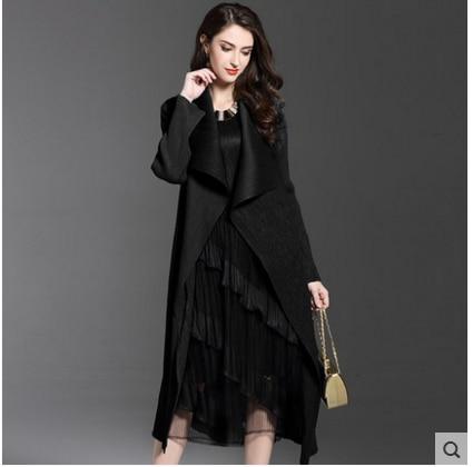Women Fashion Pleated Long Windbreaker Turn Down Collar Open Cardigan Black Green Gray Red Khaki  Female Clothing Coat Shawl